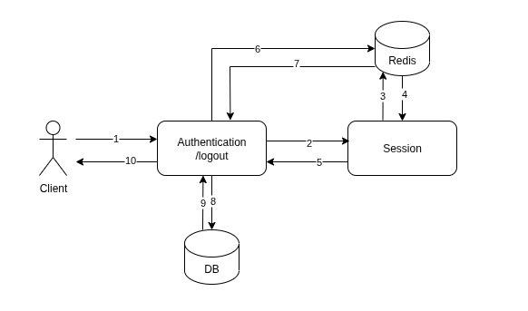 - Authentication service, client tarafındaki session ve cookie/token bilgisini temizler ve sessionın başarıyla kapatıldığı cevabını HTTP response ile client’a gönderir.